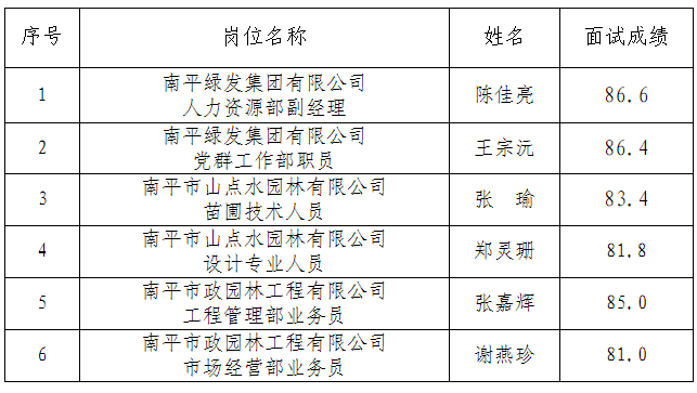 根據(jù)《南平綠發(fā)集團(tuán)有限公司招聘公告》,我集團(tuán)公司面向社會公開招聘工作已經(jīng)結(jié)束。現(xiàn)將擬錄用人員名單予以公示。
