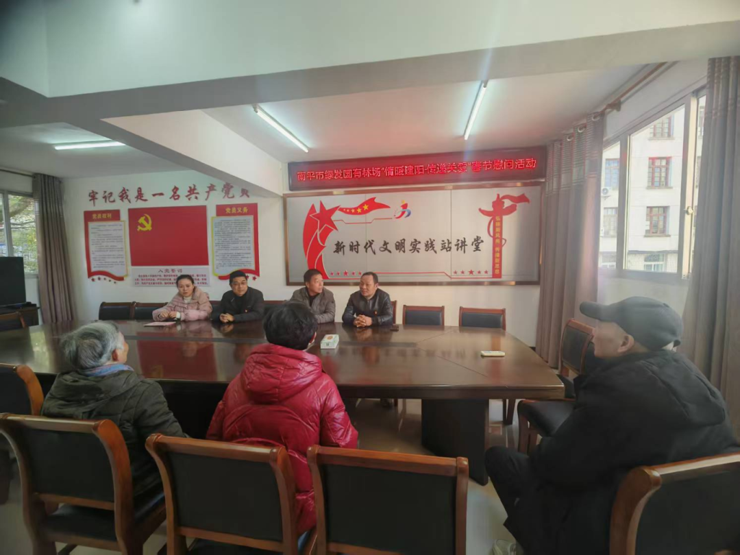 為弘揚黨的光榮傳統(tǒng),體現(xiàn)黨的關(guān)懷,傳遞組織溫暖,在2025年新春佳節(jié)來臨之際,南平市綠發(fā)國有林場黨支部聯(lián)合共建單位建陽區(qū)水東社區(qū)舉辦“情暖建陽 傳遞關(guān)愛”春節(jié)走訪慰問活動。1月21日上午,南平綠發(fā)集團黨委委員、副總經(jīng)理胡統(tǒng)德帶隊前往建陽區(qū)水東社區(qū),為林業(yè)一線退休同志送上春節(jié)祝福,讓他們切實感受到黨和政府的關(guān)懷和溫暖,過一個溫馨、祥和的春節(jié)。 在水東社區(qū),胡統(tǒng)德同志和水東社區(qū)趙桂德書記與退休同志進行了親切交談,詳細(xì)詢問了他們的身體狀況、生活中存在的困難,傾聽他們的需求和意見建議,并代表組織送上慰問金,真誠地希望老同志們堅定信心,保重身體,克服困難,樂觀地面對生活。被走訪慰問的老同志們對黨組織的關(guān)心和慰問表示感謝,并表示一定會克服困難,爭取把日子過得更好。